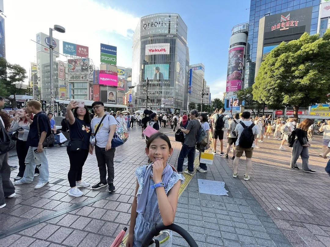 There’s a striking contrast in Tokyo that I never get tired of. We started at a local shrine—just a small, neighborhood spot where the air felt five degrees cooler. I caught a great selfie with Candace there; she’s becoming quite the little traveler. By afternoon, we hit Shibuya. Watching the girls navigate the Scramble was a trip in itself. We capped the night with a massive sushi dinner in Minato City—Sara and Cameron are basically pros with chopsticks now.